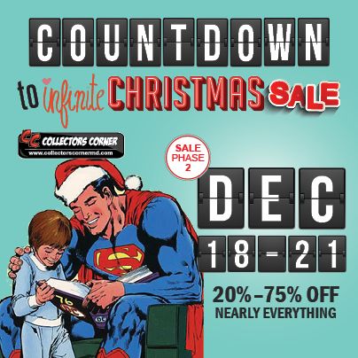 FIRST 50 In Line at ALL 3 Store Locations Get a CC Holiday Tote Bag Stuffed with Over $25 in Merchandise, including but not limited to Graphic Novels, Comics & Collectibles. Plus Each Bag will Contain A X-Mas Eve $10 Gift Certificate Good for use towards any purchase of $100 or more, usable with Sale Discounts Applied.